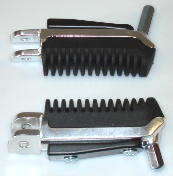 В комплекте левая и правая подножки в сборе с резиновыми накладками и ограничителями наклона.