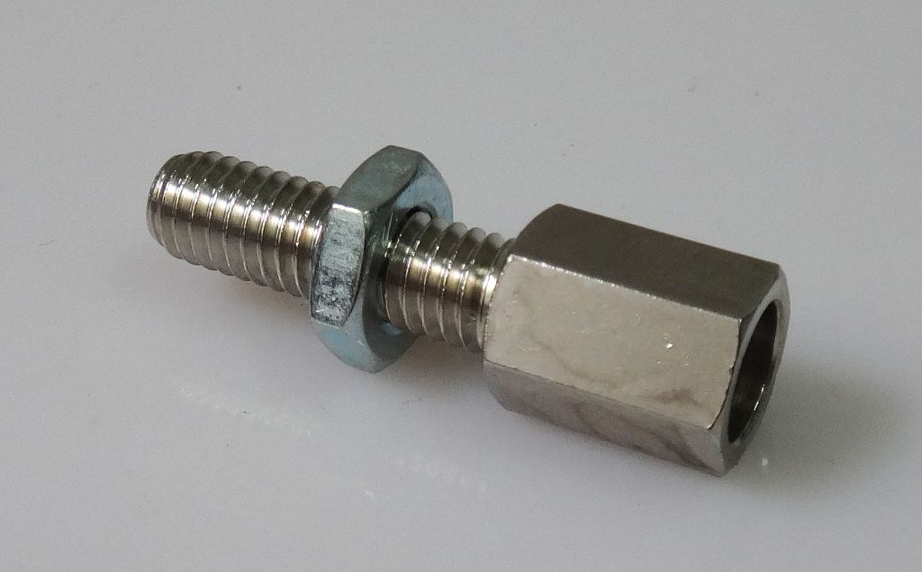 Винт с контргайкой для регулировки свободного хода троса газа. Резьба М6х1, длина резьбовой части 20 мм. Предназначен для использования с тросами до 1,8 мм Материал сталь.